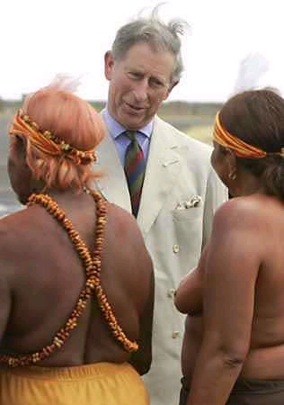 3月2日,查爾斯前往澳大利亞內(nèi)地進(jìn)行訪問(wèn)。王儲(chǔ)一抵達(dá)愛(ài)利斯泉,就由赤裸著上身的土著婦女熱情迎接,王儲(chǔ)看得兩眼不知該往哪里瞧才好。土著人又給他端上一桌蟲(chóng)蟲(chóng)大餐,更讓王儲(chǔ)吃不消。