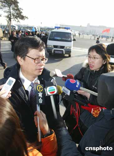 三月五日,十屆全國(guó)人大三次會(huì)議在北京人民大會(huì)堂開幕。香港特區(qū)政府行政會(huì)議非官方成員、立法會(huì)議員、中港關(guān)系策略發(fā)展研究基金會(huì)主席鄭耀棠回答港臺(tái)記者有關(guān)《反分裂國(guó)家法》的提問。作者:廖文靜
