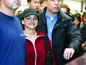 剛剛結(jié)束在漢城的個唱,諾拉·瓊斯及樂隊、工作人員一行20多人直接飛到北京。由于她一向低調(diào),故機場除了幾家媒體接機外,未見歌迷。在飛機落地半個多小時后,頭戴黑色棒球帽、身著紅色運動衣的諾拉·瓊斯在工作人員的包圍中走出了安檢口。等候多時的攝影記者們剛舉著機器沖上前,就被主辦方唐西文化請來的4名保衛(wèi)人員攔住。諾拉·瓊斯身邊的一男子立即把嬌小的她護(hù)在臂彎里,客氣地拒絕了記者的拍照。原本滿臉倦意的諾拉·瓊斯露出了歉意的笑容,在前呼后擁中直接上了等候在外的別克車上。