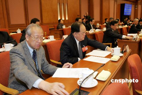 圖:港澳代表在主席團(tuán)會議上按表決器通過決議