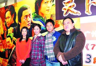 中新網(wǎng)3月9日電 據(jù)信息時(shí)報(bào)報(bào)道,《小魚兒與花無缺》在香港的播出尚在糾紛當(dāng)中,王晶昨(8)日已經(jīng)忙于來廣州參加他導(dǎo)演的另一部古裝武俠劇集《天下第一》的首播儀式。這次廣州之行,除了王晶還有郭晉安、葉璇和黃圣依。由于這部劇集囊括了不少當(dāng)紅藝人,包括因“鵬菲戀”成為內(nèi)地頭條人物的李亞鵬,香港藝人劉松仁、張衛(wèi)健、郭晉安、陳法蓉、葉璇以及臺(tái)灣地區(qū)藝人霍建華、陳怡蓉等“腕”級(jí)人物超過十余名,陣容已經(jīng)有足夠的震撼力,所以到場(chǎng)宣傳的藝人表現(xiàn)得并不積極。