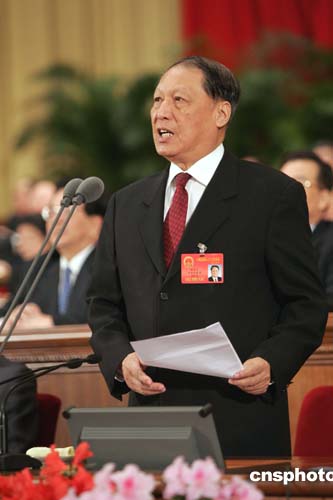 十屆全國人大三次會(huì)議第二次全體大會(huì)三月八日在北京人民大會(huì)堂舉行,成思危副委員長主持會(huì)議。作者:毛建軍