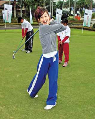 近來(lái)忙著宣傳“Honey”專輯的王心凌昨(9)日開(kāi)心應(yīng)兒童福利聯(lián)盟之邀,前往高爾夫球場(chǎng)大展球技,同行小朋友忙著要“心凌姊姊”簽名,簽完帽子簽T恤,少少10個(gè)人花了快20分鐘才搞定,讓她揮筆比揮桿手還酸。