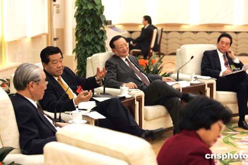 中新社北京三月十日電 題:賈慶林與臺(tái)灣代表談兩岸交流合作