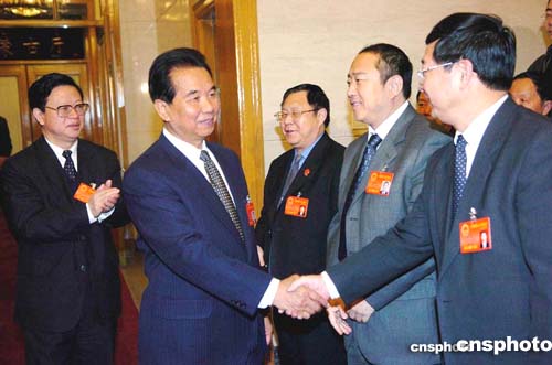 圖:吳官正與山東代表一起審議政府工作報(bào)告