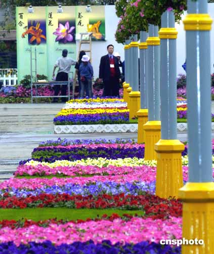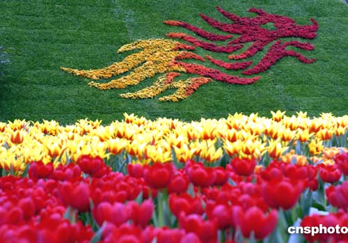 進(jìn)入花卉展,最當(dāng)眼的是一只大約十米高的大公雞,它不時(shí)發(fā)出“喔、喔、喔”的啼叫聲。原來,這是只由上萬朵花卉精心扎成錦雞。與它遙相呼應(yīng)的,是一對(duì)飛舞的火鳳凰,也是由鮮花扎制。主辦方希望以此為復(fù)蘇的香港報(bào)曉,祝愿香港騰飛。