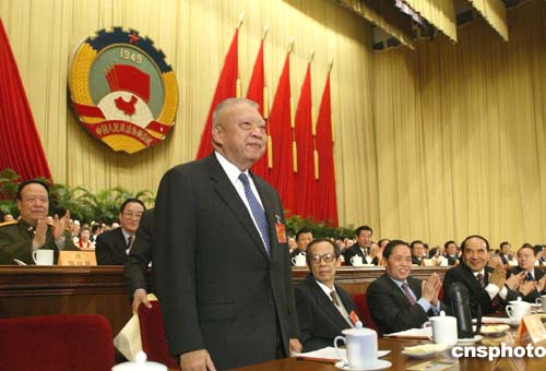 稍后,賈慶林宣布,新當(dāng)選的副主席到主席臺前排就座。董建華和另兩位新增選的副主席張梅穎、張榕明走到前排,向臺上和臺下致意。熱烈的掌聲再次響起。