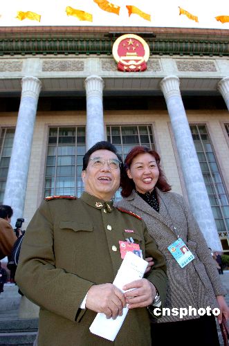 三月十二日下午,全國政協(xié)十屆三次會議在北京人民大會堂閉幕,全國政協(xié)委員、著名歌唱家李雙江走出人民大會堂。作者:陳文