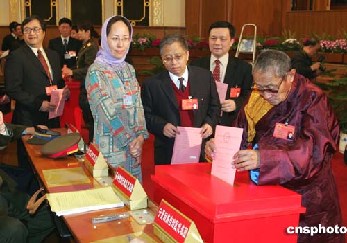 圖:少數(shù)民族代表投票選舉國家中央軍委主席