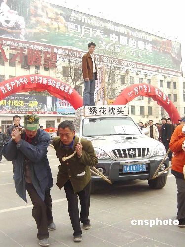 3月15日,鄭州一市民將其剛剛買了一年的“問(wèn)題”車?yán)搅嘶顒?dòng)現(xiàn)場(chǎng)。今天,河南開展“3.15”國(guó)際消費(fèi)者權(quán)益日宣傳活動(dòng),以“健康、維權(quán)”為主題的現(xiàn)場(chǎng)咨詢、投訴受理等形式的維護(hù)消費(fèi)者權(quán)益的活動(dòng)受到了廣大市民的歡迎。作者:白源