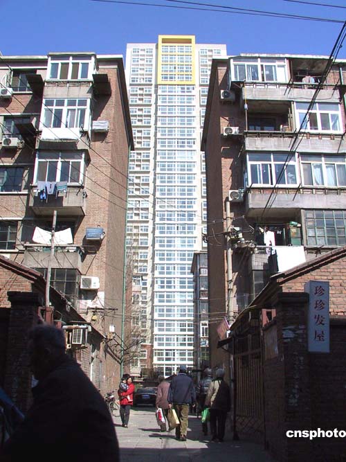 三月十八日,位于北京朝陽區(qū)雙井附近的和平村,其破舊、丑陋的紅磚平房與身后的舊居民樓和新建的商品樓形成強(qiáng)烈反差。和平村是北京市目前面積最大的“城中村”,當(dāng)局正為改變和平村現(xiàn)狀進(jìn)行拆遷改造。由于北京市房價(jià)高昂,對于部分拆遷戶,當(dāng)?shù)卣雅c房地產(chǎn)公司達(dá)成協(xié)議,將向他們提供部分價(jià)格相對低廉的經(jīng)濟(jì)適用房。作者:納夢月