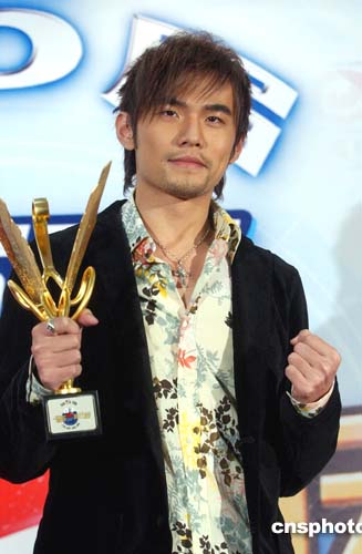 第五屆百事音樂風云榜3月20日晚在北京奧林匹克體育中心舉行,周杰倫共獲得年度最佳專輯、港臺年度最佳男歌手、臺灣最受歡迎男歌手、港臺十大金曲、最佳粵語作曲多項大獎,成為大贏家。作者:韓藝冰