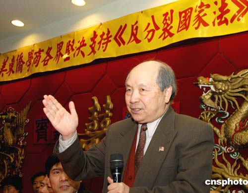 當(dāng)?shù)貢r(shí)間三月二十六日,美東僑學(xué)商各界舉行誓師大會(huì)堅(jiān)決支持《反分裂國家法》,旅美臺(tái)胞成功教授指出,“臺(tái)獨(dú)”勢(shì)力歪曲《反分裂國家法》,意在誤導(dǎo)臺(tái)灣民眾。作者:龔文謨