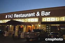 姚明在美國NBA發(fā)展如日中天,三月下旬,姚明父母開設的“姚餐廳”也在火箭隊大本營休斯敦西區(qū)一個購物中心開張。這個面積超過一千平方米,投資一百五十萬美元的餐廳包括中餐館和酒吧兩部分,裝修豪華,里面陳設了許多姚明的照片;餐廳設置了大屏幕電視,可觀看NBA現(xiàn)場直播,吸引了許多“姚明迷”。作者:余東暉