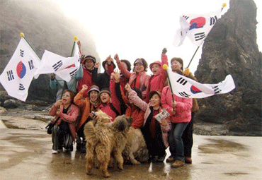據(jù)報道,該游輪定員為215人,這次有希望游覽“獨島”的游客和媒體記者等60多人搭乘了這艘船。韓國游客一踏上“獨島”就口喊“我們的領(lǐng)土獨島”。