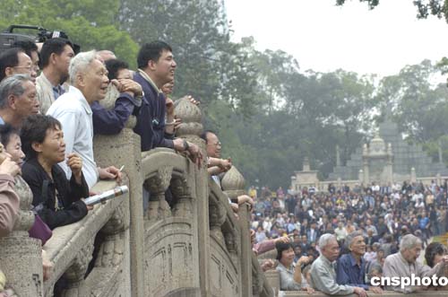 上午九時三十分左右,拜謁活動還未正式開始,烈士陵園內(nèi)就已人山人海,擠滿了聞訊趕來歡迎江丙坤一行的市民。大家都期待著這個具有歷史意義時刻的到來。