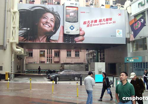 香港街頭廣告種類繁多,在銅鑼灣鬧市區(qū)所展現的巨型立體手機廣告更令人奪目。作者:譚達明