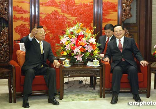 三月三十一日,國務(wù)委員唐家璇在北京會(huì)見中國國民黨副主席江丙坤一行。作者:廖文靜