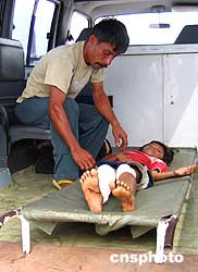3月31日,印度尼西亞尼亞斯島地震災(zāi)區(qū)的受傷災(zāi)民陸續(xù)運到棉蘭軍用機場,分流到各急救站,傷況嚴重的災(zāi)民,現(xiàn)場接受治療。作者:洪少葵