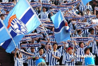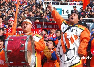 二00五中國中超足球聯(lián)賽揭幕戰(zhàn)四月二日下午在山東省體育中心體育場進行,由山東魯能泰山隊主場迎戰(zhàn)上海永大隊。經(jīng)過九十分鐘的比賽,山東魯能泰山隊?wèi){借李金羽補時階段的入球二比一力克上海永大隊,取得二00五中超足球聯(lián)賽的首場勝利。在泰山隊主場觀看中超足球聯(lián)賽揭幕戰(zhàn)的球迷達(dá)四萬多人。作者:宋衛(wèi)東