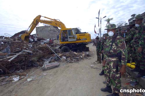印尼海陸空三軍救援地震災(zāi)區(qū)