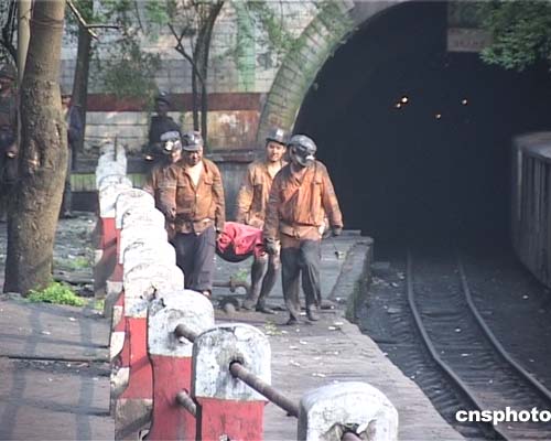 四月五日下午二時(shí)十五分,位于重慶市合川境內(nèi)的天府礦業(yè)公司三匯一礦發(fā)生煤與瓦斯突出特大事故,目前有一人遇難,二十二人生死不明。 圖為遇難礦工尸體被抬出井口。作者:郭晉嘉