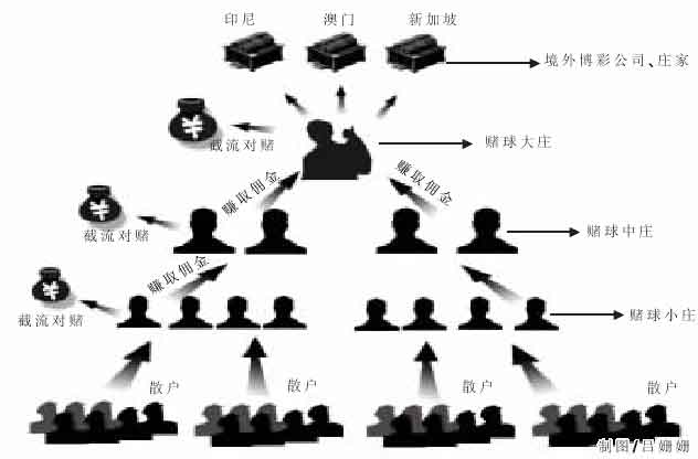 散戶投注給小莊,小莊上面有稍大一點的莊,這樣層層遞進,最后匯集到少數(shù)大莊。