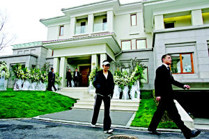 陳逸飛的靈堂就設置在他剛裝修完工的別墅里。陳逸飛的別墅是一幢歐美風格的建筑。乳黃色的墻面和紅色的瓦,顯得雍容華貴。他在2002年花費了800萬左右買下了這所住宅,去年年底裝修完畢。