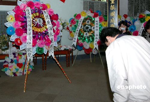 為抗日壯士的愛國(guó)精神所感,臺(tái)灣記者自發(fā)向英魂們敬獻(xiàn)花圈。兩位代表神情肅穆,恭持花圈,沿著綠樹掩映的甬道登上忠烈祠。祠內(nèi)懸掛孫中山先生畫像,墻壁上鐫刻著九千余位烈士的英名,氣氛莊嚴(yán)凝重。臺(tái)灣記者將寫有“民族英雄永垂不朽”挽聯(lián)的花圈置于擺滿鮮花的案前,然后鞠躬致敬,并在祠內(nèi)合影留念。