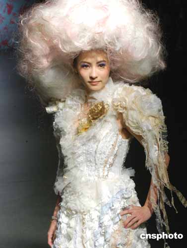 歌影紅星張柏芝4月16日在香港為著名時(shí)裝設(shè)計(jì)師尹泰尉時(shí)裝演譯作品。作者:鄧慶樂(lè)