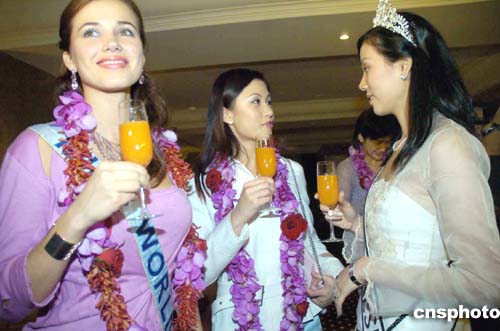 由鳳凰衛(wèi)視組織的“鳳凰有約——情系印度尼西亞送愛心”赴印度尼西亞親善訪問團(tuán),4月17至20日在印度尼西亞展開災(zāi)區(qū)親善探訪活動。圖為2004年世界小姐Miss Maria Garcia Mantilla (左)、2004年中華小姐李詩琪(中)與印度尼西亞小姐一起為災(zāi)區(qū)送愛心。作者:洪少葵