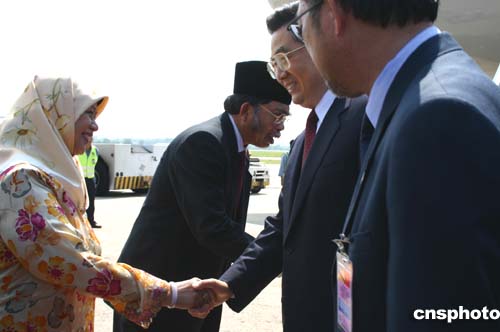 中新網(wǎng)4月20日電(記者 李靜)中國國家主席胡錦濤乘專機抵達文萊,文萊王儲夫婦到機場迎接。