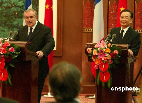 今天上午剛剛抵達(dá)北京的拉法蘭,在與中國國務(wù)院總理溫家寶舉行了兩個多小時的會談后,共同會見記者。拉法蘭說,法國在歐盟解除對華軍售禁令問題上的立場是清晰的,將繼續(xù)為此作出努力。