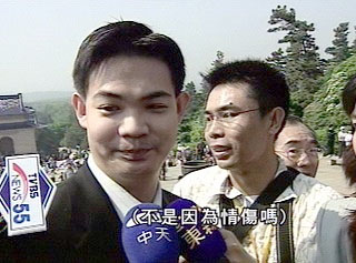 第三次來到南京中山陵,連戰(zhàn)的大公子連勝文,一路走來輕松,但被問到是不是為情消瘦,連勝文把國父都搬出來當(dāng)作擋箭牌,表示今天來的地方很神圣,不適宜問這種八卦話題。倒是第一次來到南京的弟弟連勝武趕快出面幫哥哥解圍,表示是因?yàn)楣ぷ鞣敝夭畔荨?object align="left" classid="clsid:D27CDB6E-AE6D-11cf-96B8-444553540000" codebase="http:///pub/shockwave/cabs/flash/swflash.cab#version=5,0,0,0" height="250" hspace="2" vspace="2" width="350">