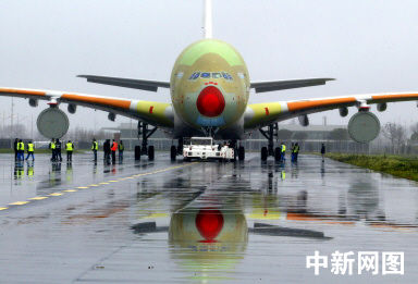 裝有4個引擎的巨無霸可以乘坐840名旅客,連續(xù)飛行1.5萬千米,被認為是對波音747在巨型客機市場的挑戰(zhàn)。