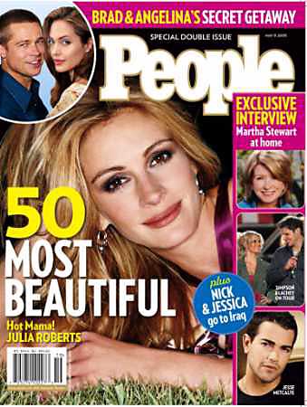 去年11月生下龍鳳胎的茱麗亞·羅伯茨則上了雜志“最有魅力50人”這期的封面,這份特刊將于周五發(fā)行。羅伯茨因此也創(chuàng)下一項紀錄:三次登上“最有魅力人物”的封面,9次被提名。