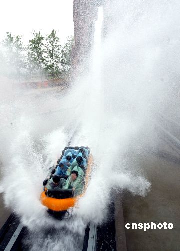 北京石景山游樂園在“五一”長(zhǎng)假前推出驚險(xiǎn)大型主題項(xiàng)目--瓊斯探險(xiǎn),此項(xiàng)目水道長(zhǎng)達(dá)五百米,提升高度二十米,最大滑行時(shí)速達(dá)六十五公里,兼有峽谷漂流和急流勇進(jìn)的雙重感覺。在游船沿軌道下滑的過程中,如同置身于高山峽谷,可感受到飛流直下的驚險(xiǎn)境界。作者:李剛