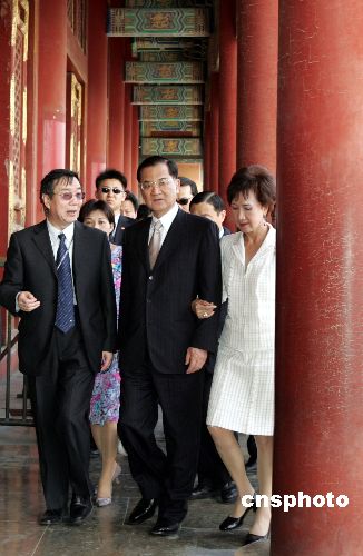 連戰(zhàn)訪團隨即穿太和門,踏漢白玉塔基拾級登臨故宮內(nèi)最雄麗的太和殿,有記者詢問:“連戰(zhàn)主席,能不能談?wù)勀鷮蕦m的看法?”連戰(zhàn)連嘆“很好、很好”,其夫人連方瑀也不住的頷首示意。