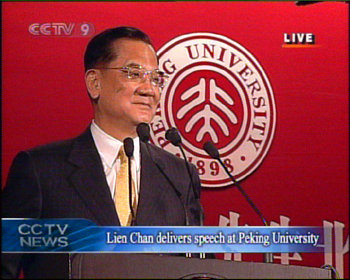 連戰(zhàn)在演講開始時(shí)說,今天我和內(nèi)人偕同中國國民黨大陸訪問團(tuán)一起來到北京大學(xué),非常榮幸,也非常溫馨。剛才我了解到北京大學(xué)就是當(dāng)年燕京的校址,我的母親(上世紀(jì))三十年代在這里念書,所以今天來到這里可以說是倍感親切。