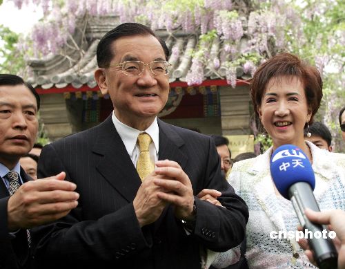 二零零五年四月二十九日,中國(guó)國(guó)民黨主席連戰(zhàn)在北京大學(xué)演講后,攜夫人參觀母親趙蘭坤當(dāng)年在燕京大學(xué)就讀時(shí)曾住過(guò)的靜園六院中的一院。圖為連戰(zhàn)在院外接受記者采訪(fǎng)時(shí)高度稱(chēng)贊北大學(xué)子。作者:武仲林