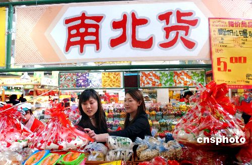 “五一”黃金周將至,北京商業(yè)部門(mén)為節(jié)日準(zhǔn)備了充足的商品。4月29日,崇文門(mén)菜市場(chǎng)內(nèi)來(lái)自全國(guó)各地的特色食品琳瑯滿目,供顧客選購(gòu)。作者:李樹(shù)貴