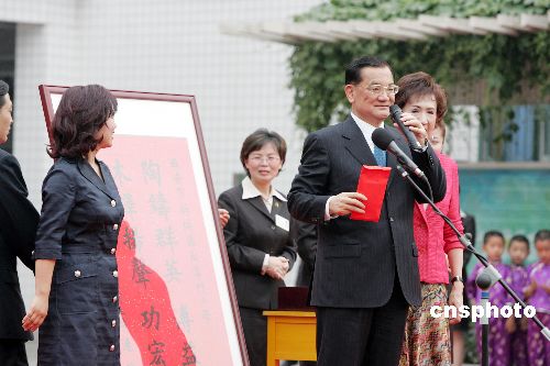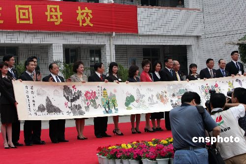 中新網(wǎng)4月30日電 中國(guó)國(guó)民黨主席連戰(zhàn)今日(30日)下午回到母校——后宰門小學(xué),并向該校捐贈(zèng)包括《臺(tái)灣通史》等三份禮物及10萬(wàn)元捐款。