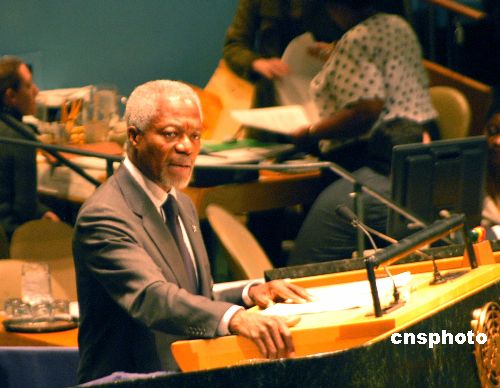 當?shù)貢r間五月二日,《不擴散核武器條約》二○○五年審議大會在紐約聯(lián)合國總部召開,聯(lián)合國秘書長安南到會致詞。作者:譚宏偉