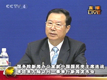 有外國記者在記者會上提問:陳水扁說希望胡錦濤訪問臺灣,您對此有何評價?同時您說連戰(zhàn)主席這次訪問大陸的時候,對于和平的問題有了一些進展,我想問有沒有談到對臺設(shè)置導彈的問題?如果談到的話,是否會撤除這些導彈?如果撤除的話,撤除多少導彈?如果沒有談到這個問題,為什幺沒有?