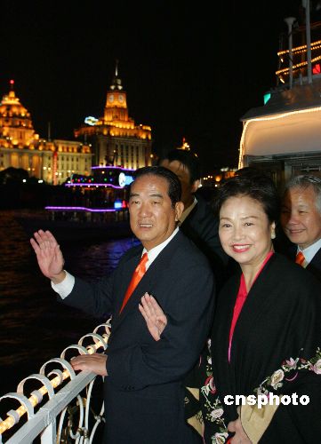 中新社上海五月七日電(記者許曉青 曾嘉)華燈璀璨,在一陣陣江南童謠聲中,親民黨主席宋楚瑜攜夫人陳萬(wàn)水登上了“上海風(fēng)采”號(hào)游船,夜游黃浦江。宋楚瑜夫婦在船舷上感慨:“百聞不如一見(jiàn)”,宋楚瑜還饒有興致地操起滬語(yǔ),驚嘆說(shuō):“變化大得不得了!”