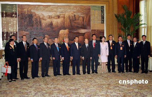 五月八日,親民黨主席宋楚瑜在上海拜會(huì)海峽兩岸關(guān)系協(xié)會(huì)會(huì)長汪道涵先生,圖為親民黨大陸訪問團(tuán)代表與汪道涵等賓客一起合影。作者:潘索菲