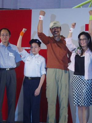 中新網(wǎng)5月9日電 據(jù)香港《大公報(bào)》報(bào)道,香港紅十字會(huì)昨日趁母親佳節(jié),舉辦“人道人人道”活動(dòng),希望喚起大眾對(duì)人道精神的關(guān)注,積極體現(xiàn)尊重生命。大會(huì)特別邀請(qǐng)了今次活動(dòng)的宣傳大使周潤(rùn)發(fā)出席,其它嘉賓尚有地中海貧血癥患者楊康鈿及零四年香港最高體育精神運(yùn)動(dòng)員蘇樺偉等!鞍l(fā)哥”昨日亦聯(lián)同其它嘉賓為“人道墻”揭開(kāi)序幕,又齊戴上“人道彩色手環(huán)”。