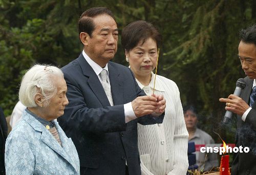 九日上午,親民黨主席宋楚瑜攜八十七歲高齡的母親、夫人及家人來(lái)到祖籍地湘潭縣射埠鎮(zhèn)巨魚村,完成他湖南之行的最大心愿——祭掃曾祖父、祖父和祖母的墓,盡一個(gè)離鄉(xiāng)半個(gè)多世紀(jì)游子的孝道。