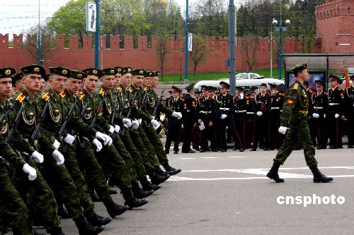 當(dāng)?shù)貢r間五月九日,閱兵方隊前往紅場參加俄羅斯紀(jì)念衛(wèi)國戰(zhàn)爭勝利六十周年慶典的閱兵式。作者:孫宇挺
