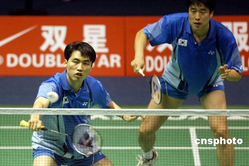 金東文今天依舊和老搭檔河泰權(quán)配合男雙,二人狀態(tài)頗佳,很快以兩個十五比二擊敗泰國選手蘇凱特·普拉帕卡莫爾和帕塔波爾,衛(wèi)冕冠軍韓國隊從而以三比一迎來蘇杯的首場勝利。